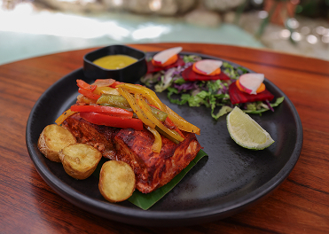 Restaurante Lol-Ha, en maya “Flor de agua”, déjate llevar por los aromas y sabores tradicionales de la Península de Yucatán en nuestro restaurante, enclavado en medio de la selva maya. Aquí, cada platillo es una experiencia que conecta con la tierra, preparado con ingredientes locales y recetas ancestrales que celebran la riqueza gastronómica de la región. Disfruta de una comida rodeada de la naturaleza viva, con el canto de las aves y el susurro del viento entre los árboles como acompañantes.